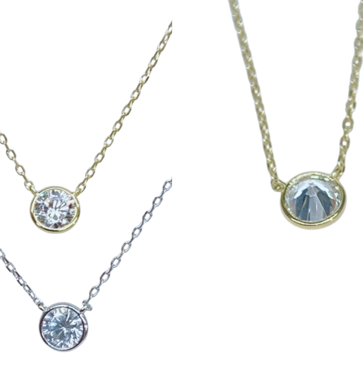 16-18' inch adjustable chain. Cz Bezel Stone. 14 K Gold Vermeil Sterling Silver. Gold Option only