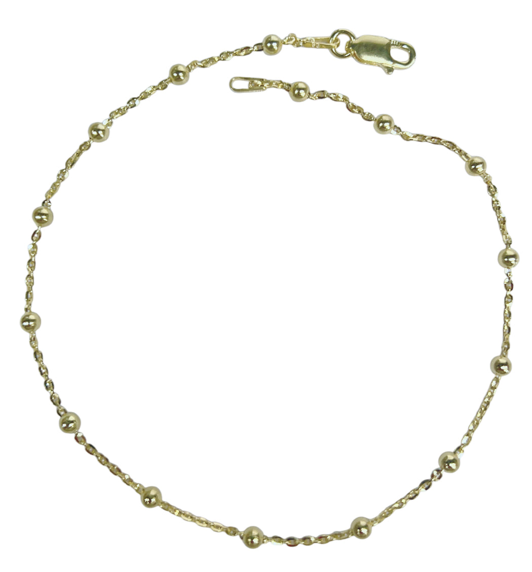 Anklet-14 K Gold Vermeil-Sterling Silver-Ball Chain