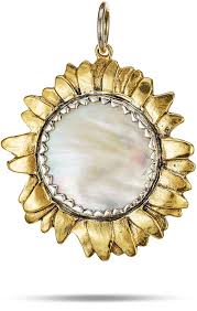 Carved petals radiate in a halo surrounding a white pearl focal that evokes a lunar aura. Hand set in a sterling silver bezel, each pearl is one of a kind and features irregular qualities reflective of an otherworldly surface.