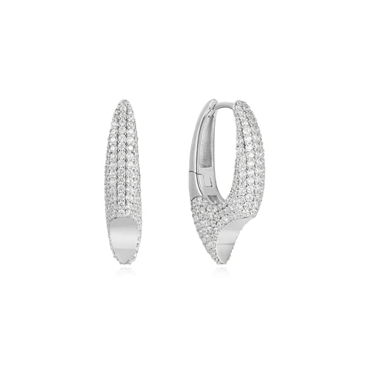Make a sparkling statement with these head-turning silver pavé chunky hoop earrings crafted from rhodium-plated sterling silver. Encrusted with glistening cubic zirconia stones, these mid-sized hoops immediately elevate any look. Timeless, chic and effortlessly cool, style yours with simple huggies and hoops to create the perfect party ear stack.
